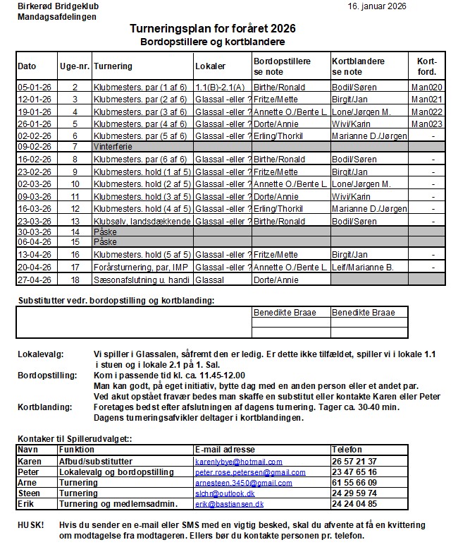 Turneringsprogram for sæsonen 2025/26